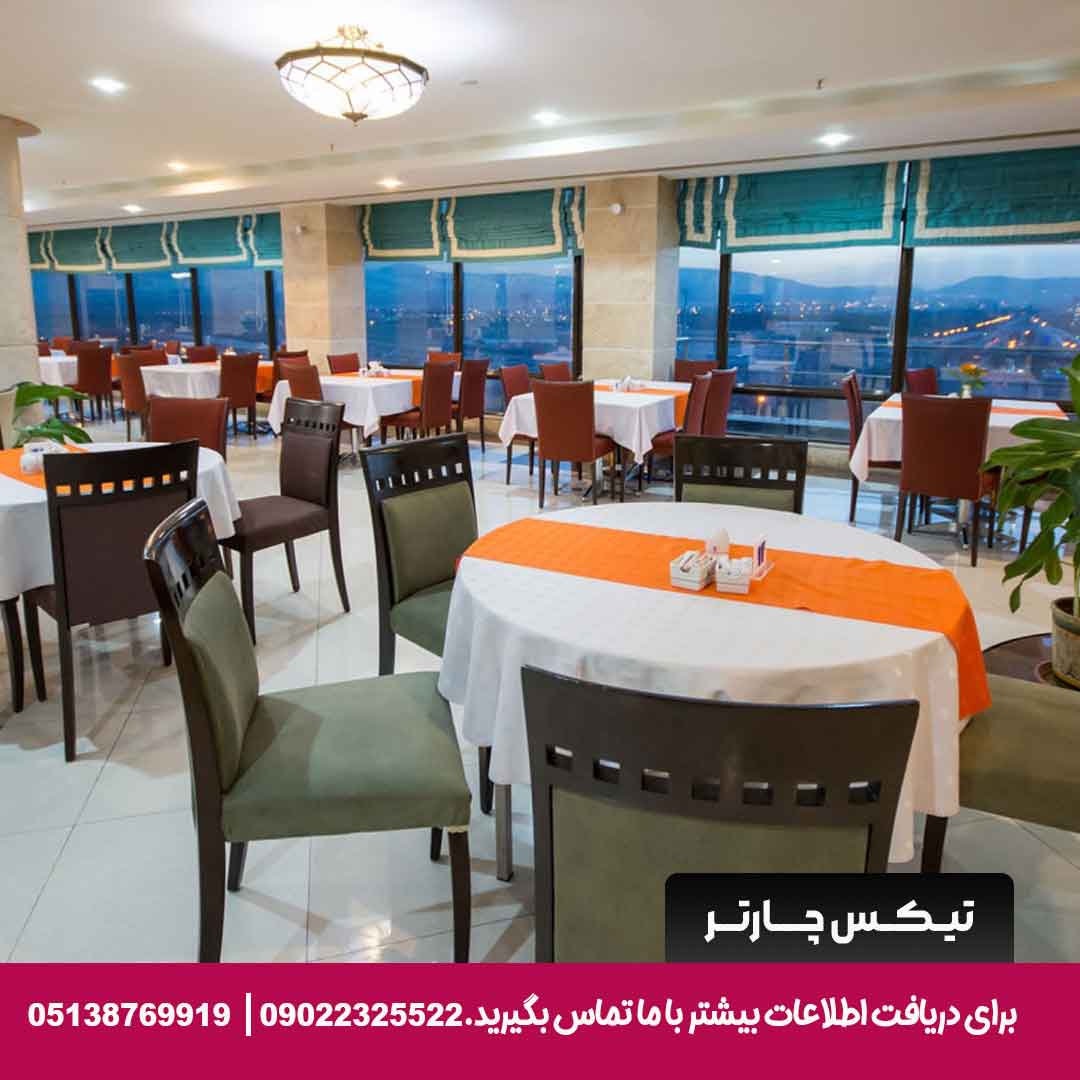 رستوران «چشمانداز» در طبقه ششم هتل با ظرفیت حدود ۱۵۰ نفر وجود دارد و وعدههای صبحانه، ناهار و شام ارائه میدهد. منو شامل غذاهای ایرانی و محلی است.